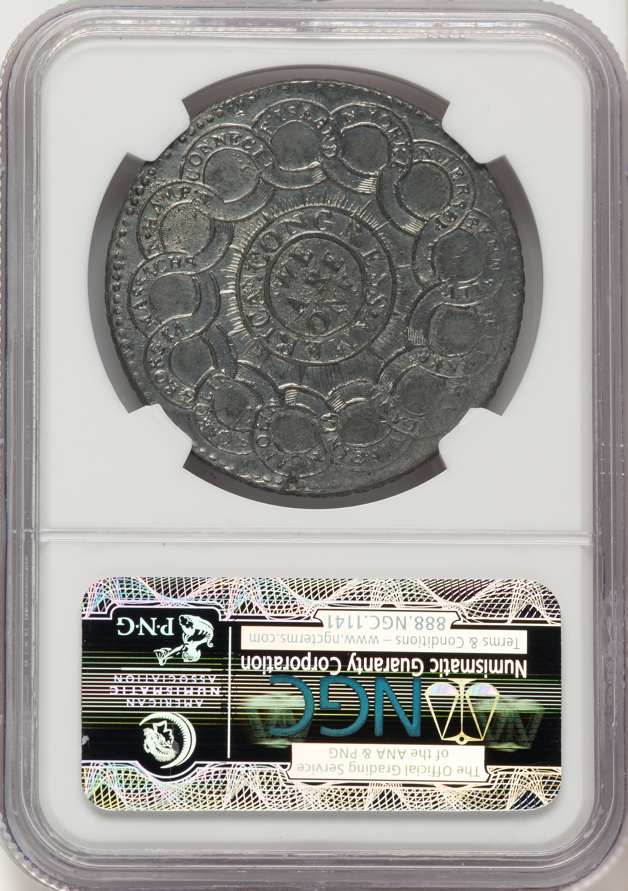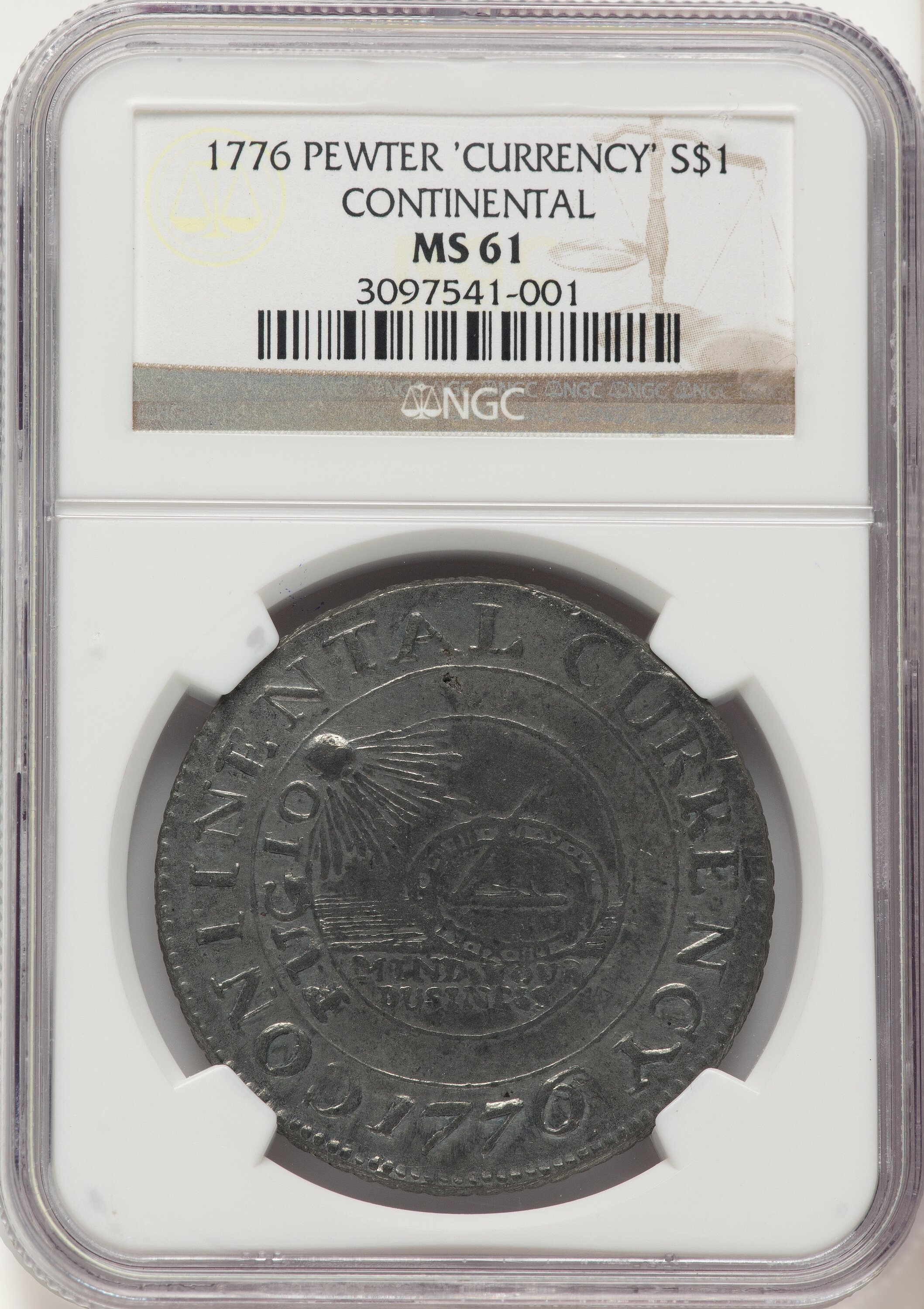 1776 Continental Dollar, CURRENCY, Pewter 61 NGC