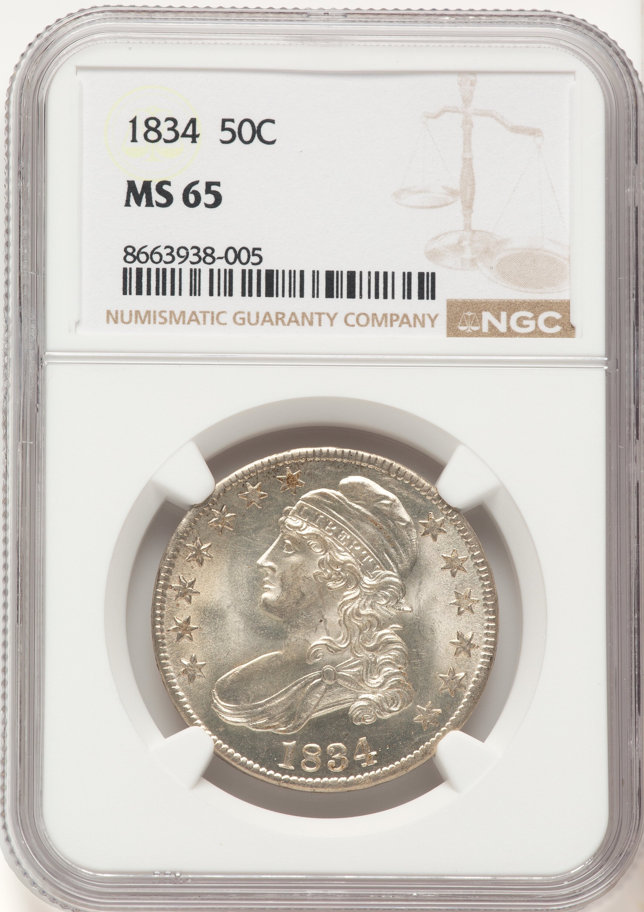 1834 50C Large Date Large Letter, MS 65 NGC