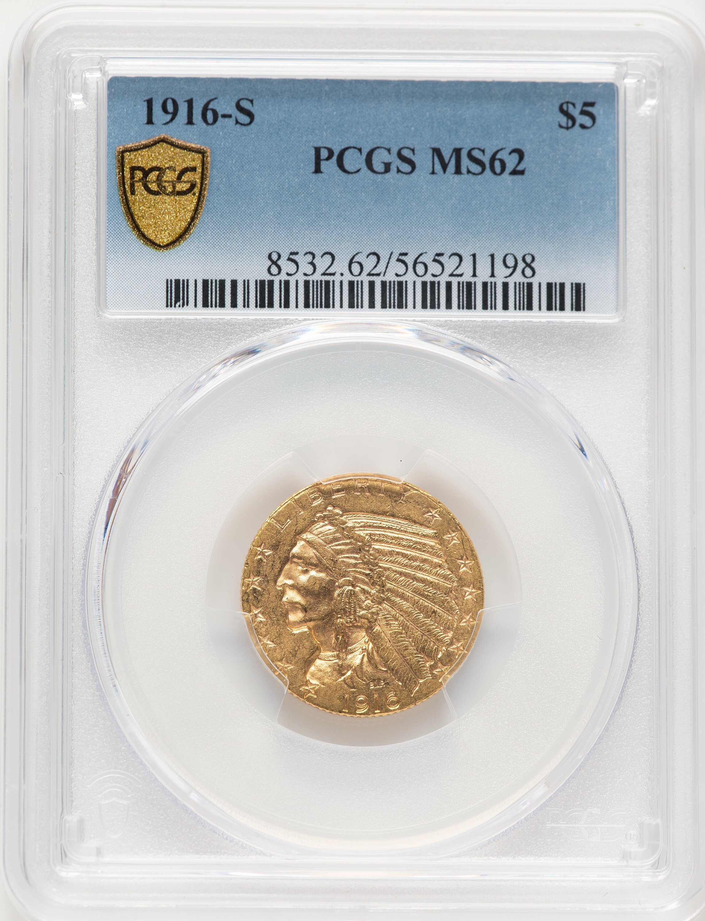1916-S $5 PCGS Secure 62 PCGS