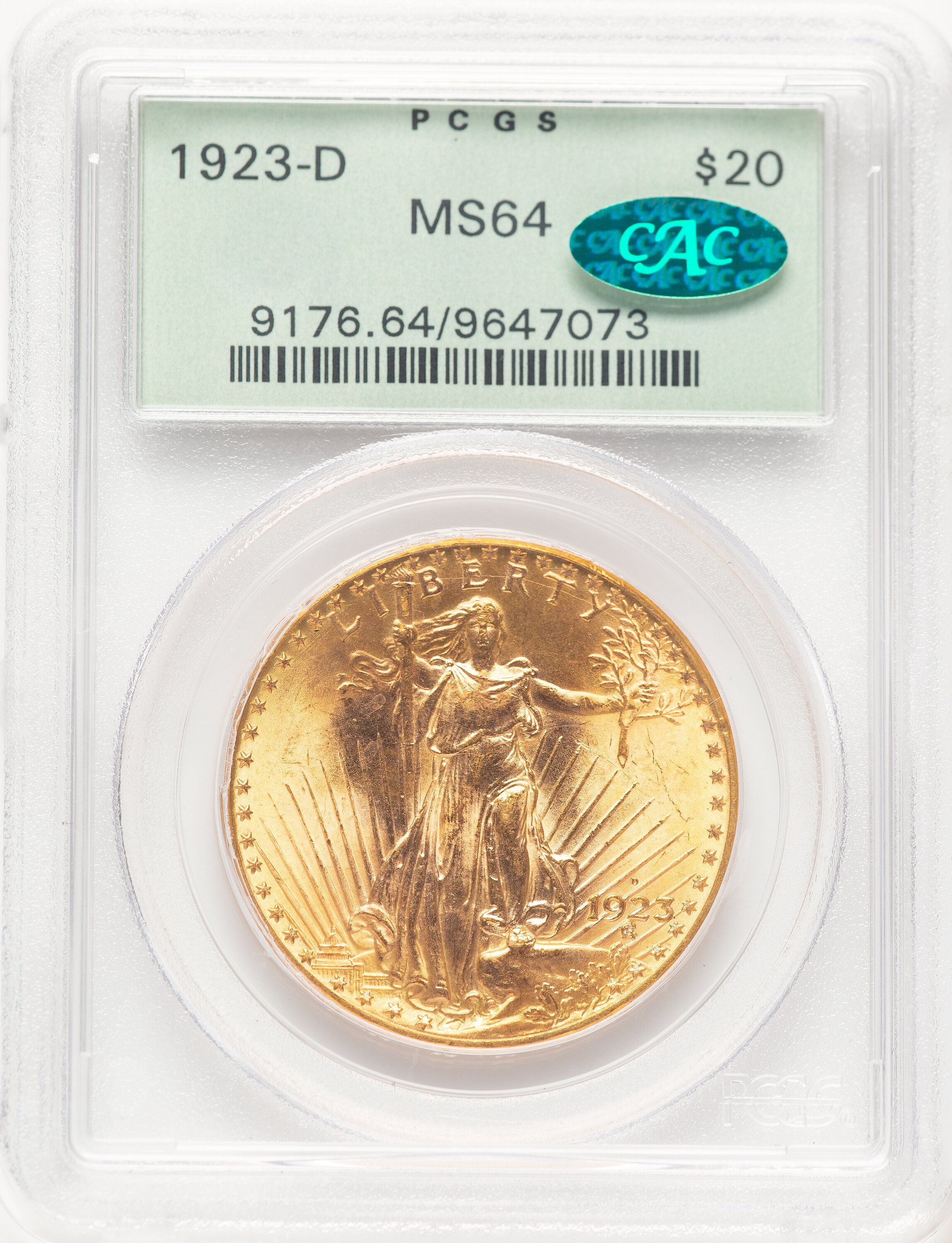 1923-D $20 CAC 64 PCGS