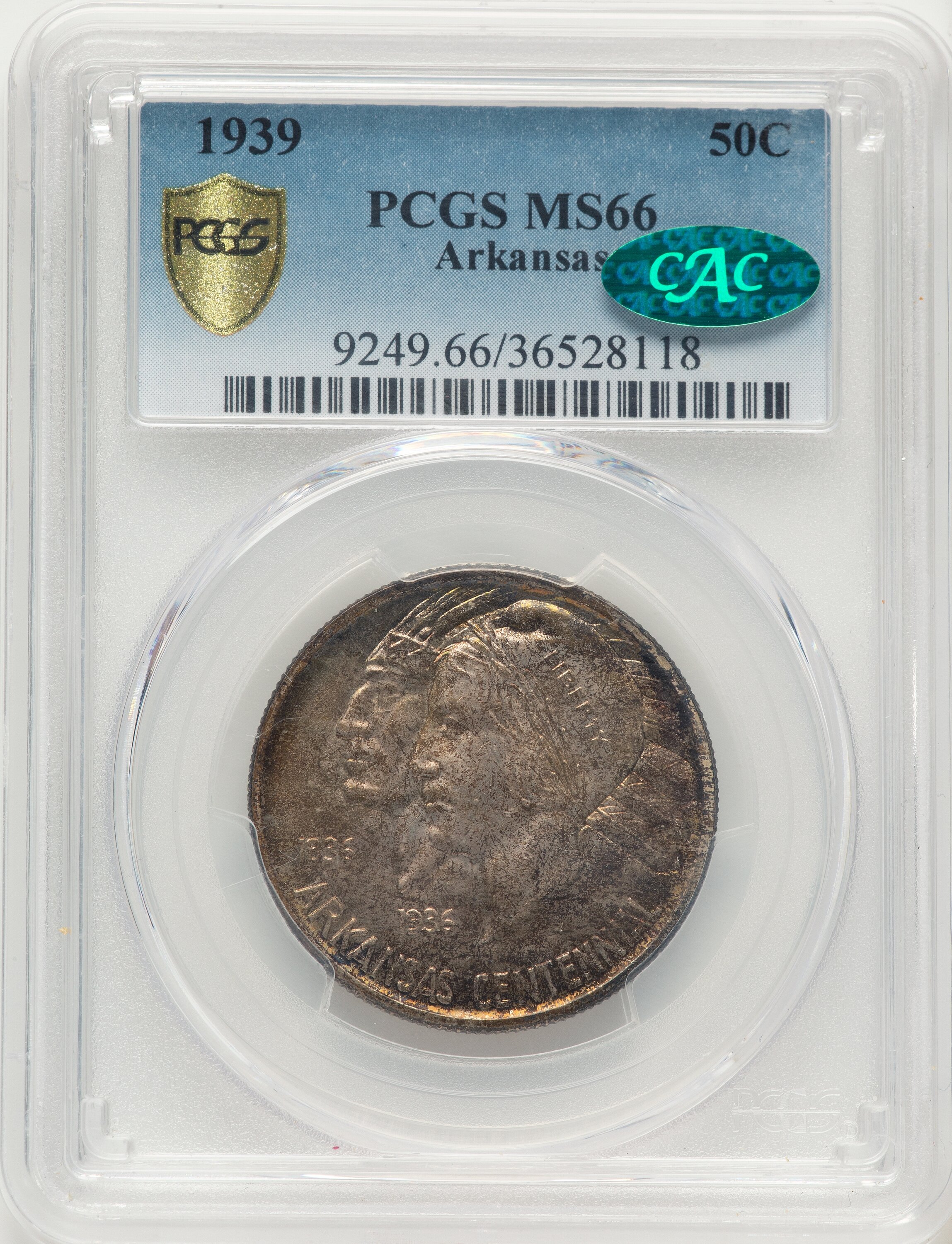 1939 50C Arkansas, MS CAC PCGS Secure 66 PCGS