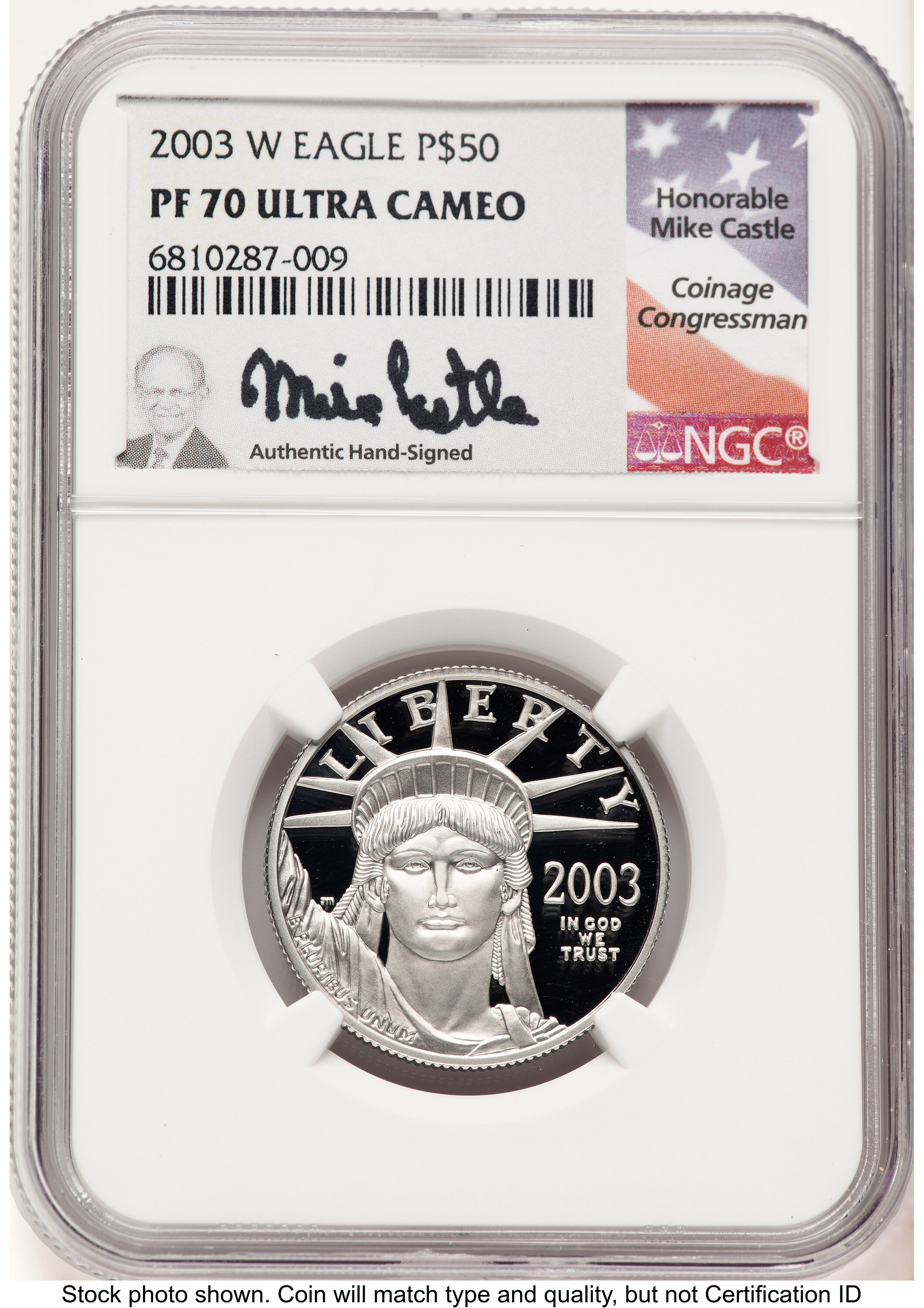 2003-W Proof Platinum Eagle 1/2 oz Mike Castle 70 NGC