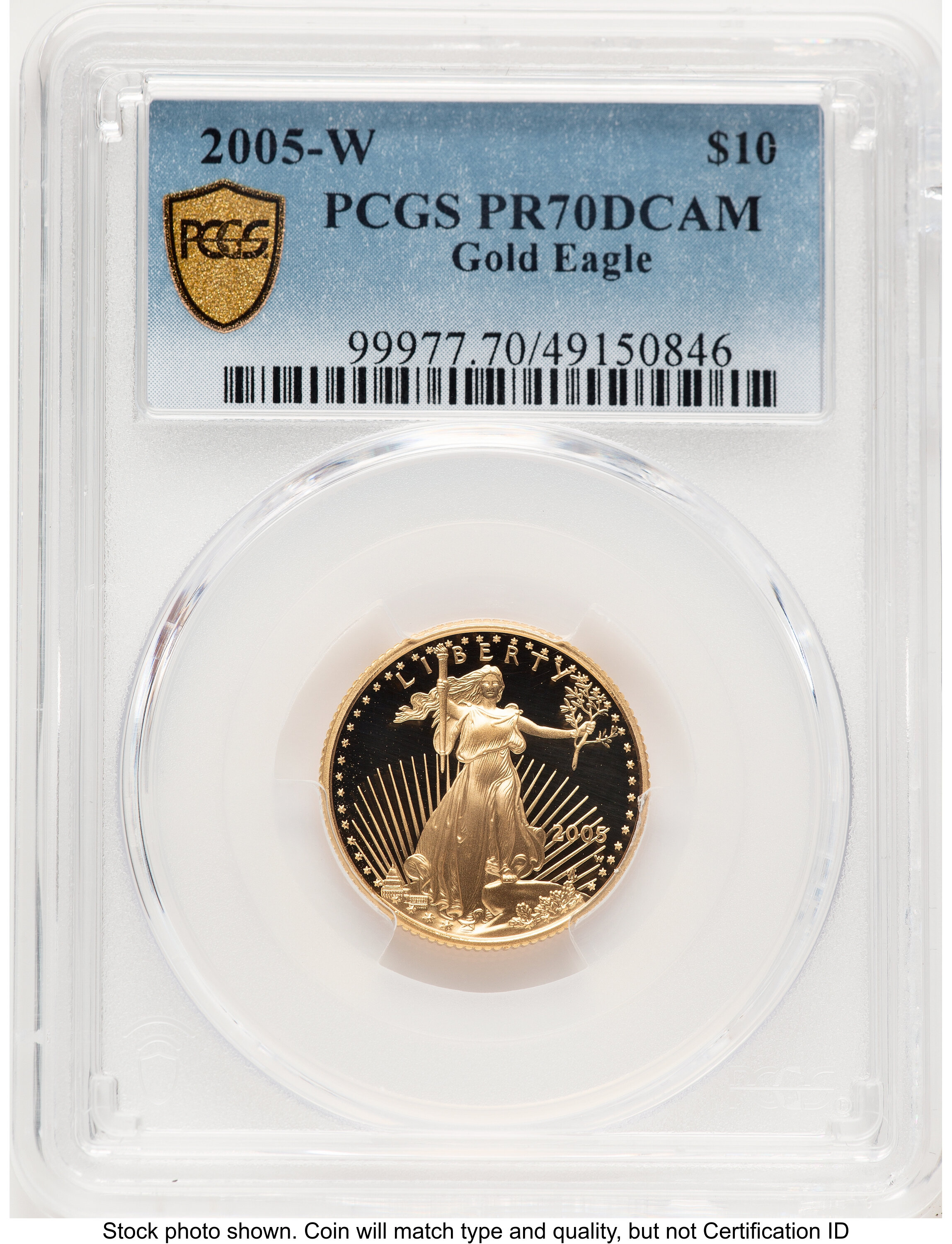 2005-W Proof Gold Eagle 1/4 oz Blue Gradient 70 PCGS