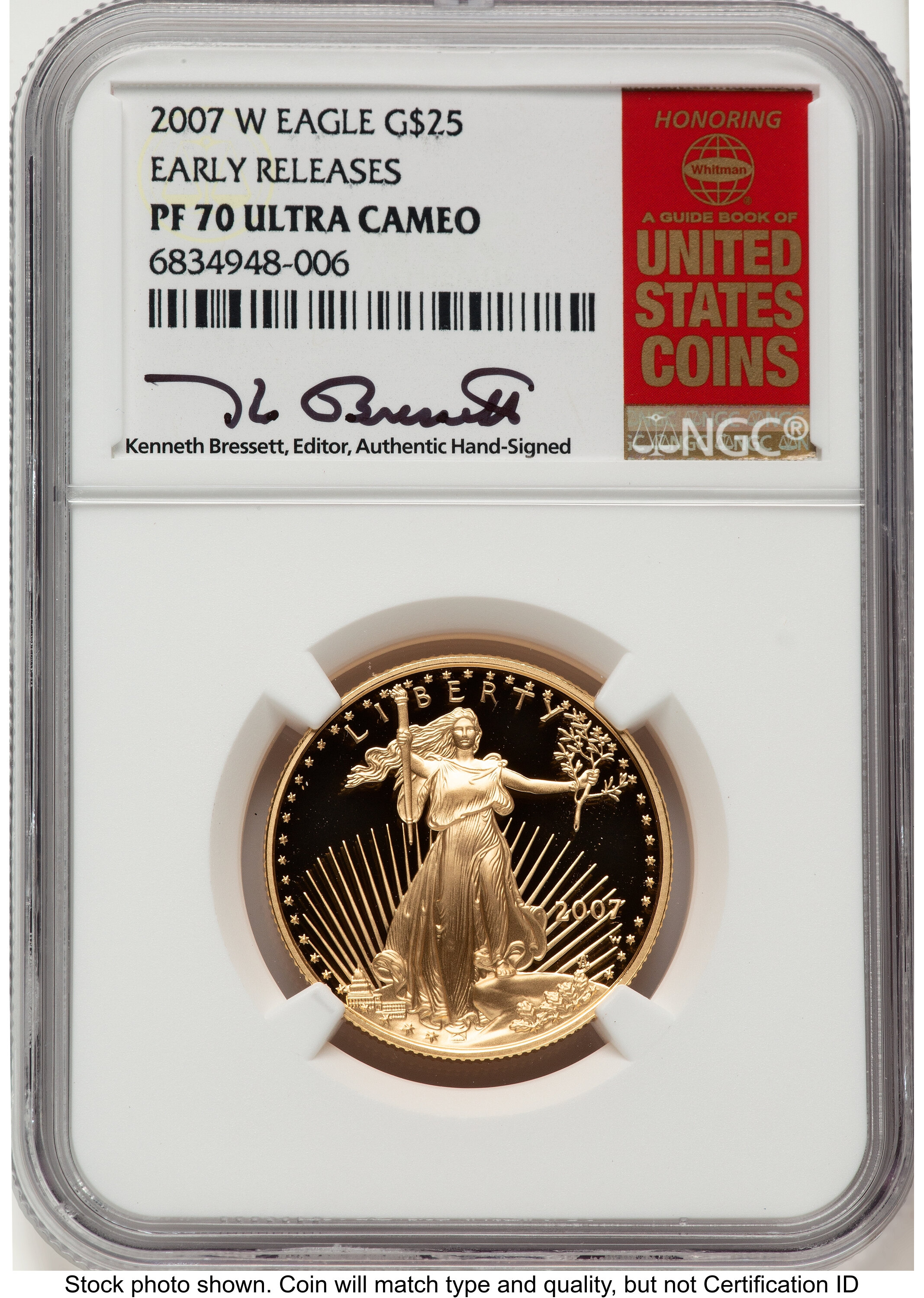2007-W Proof Gold Eagle 1/2 oz ER Kenneth Bressett Red Book 70 NGC