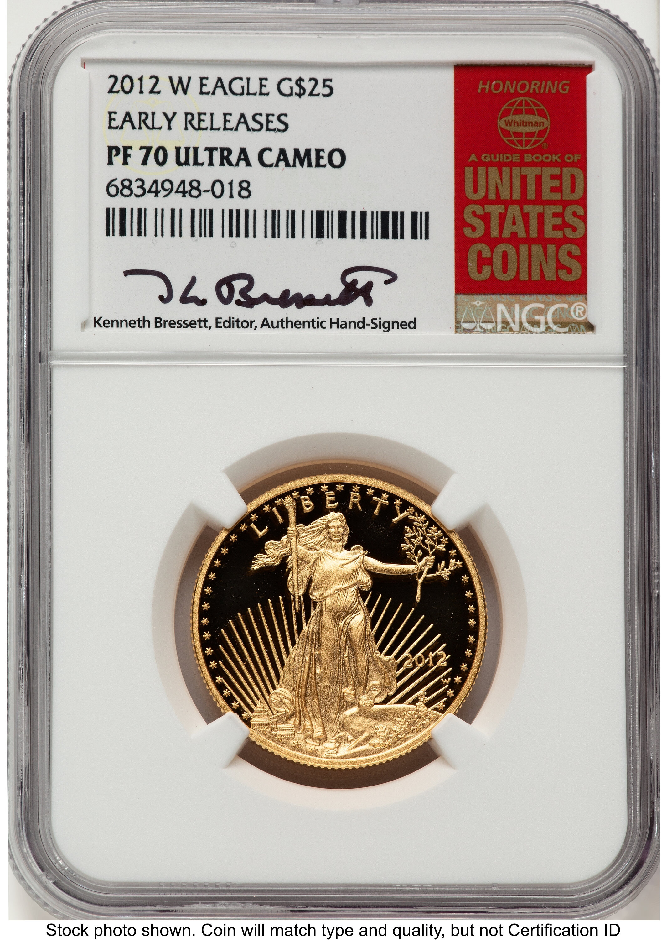 2012-W Proof Gold Eagle 1/2 oz ER Kenneth Bressett Red Book 70 NGC