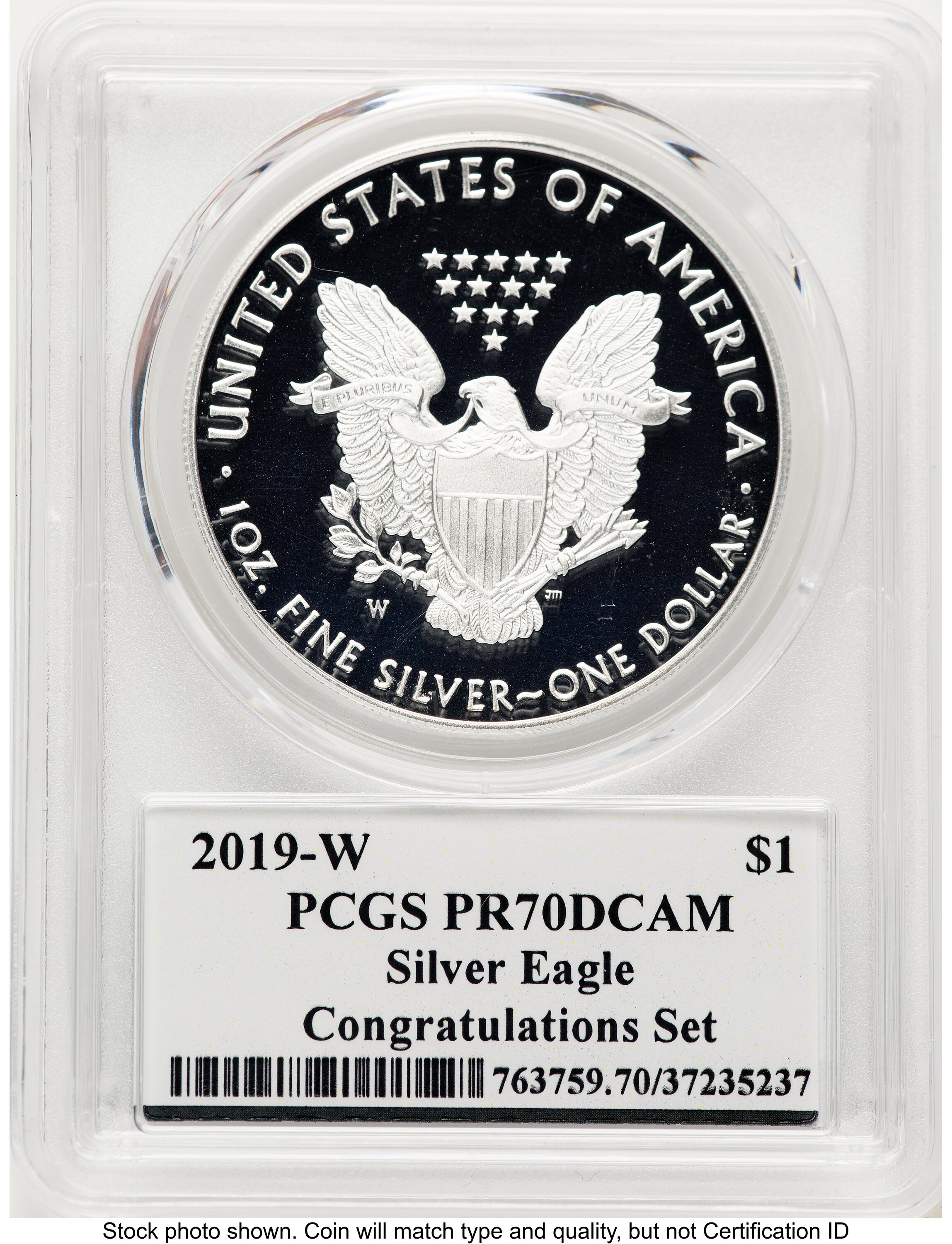 2019-W Proof Silver Eagle Congratulations Set 1 oz Premier Label 70 PCGS