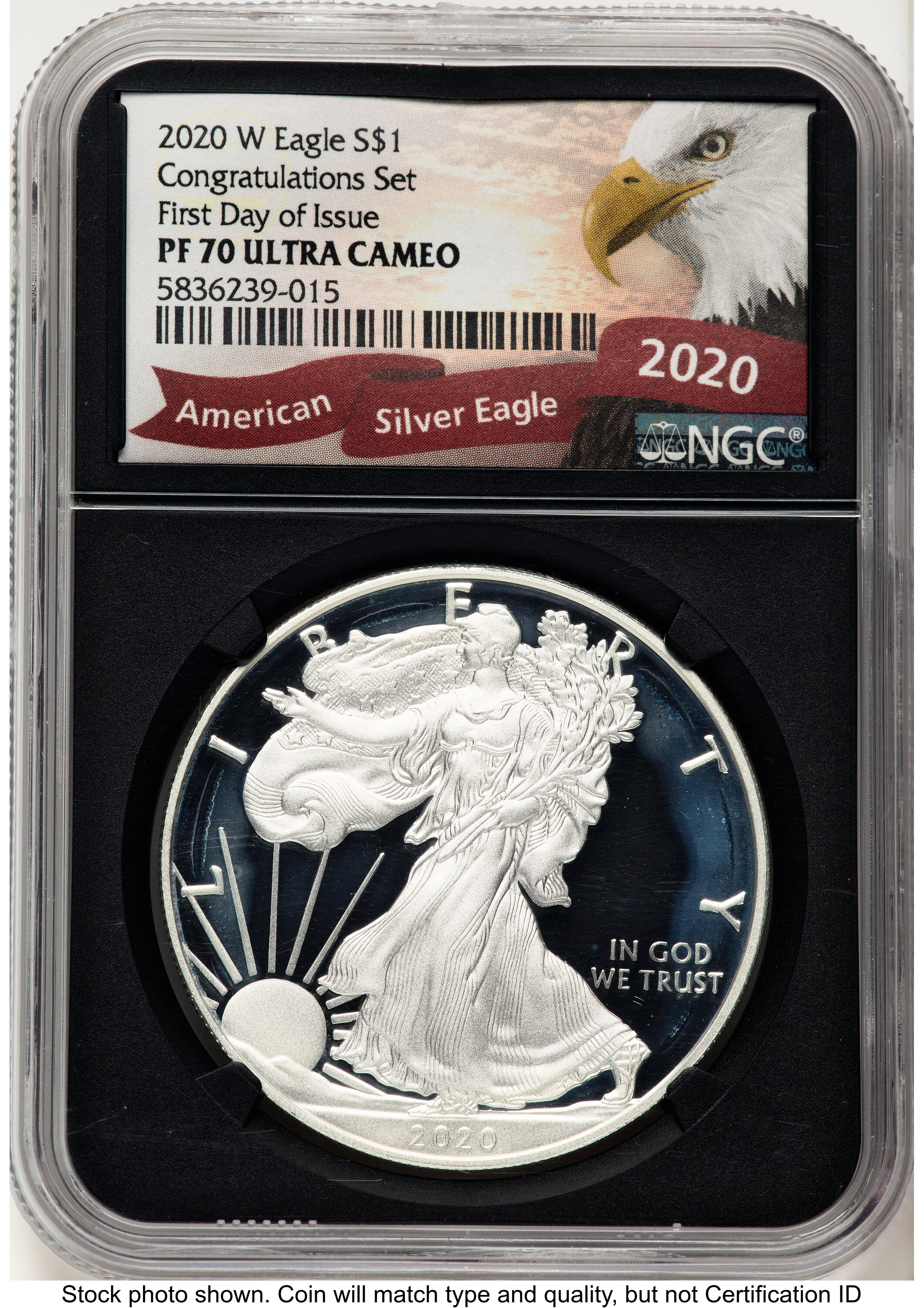2020-W Proof Silver Eagle 1 oz FDI Eagle Ribbon Label 70 NGC