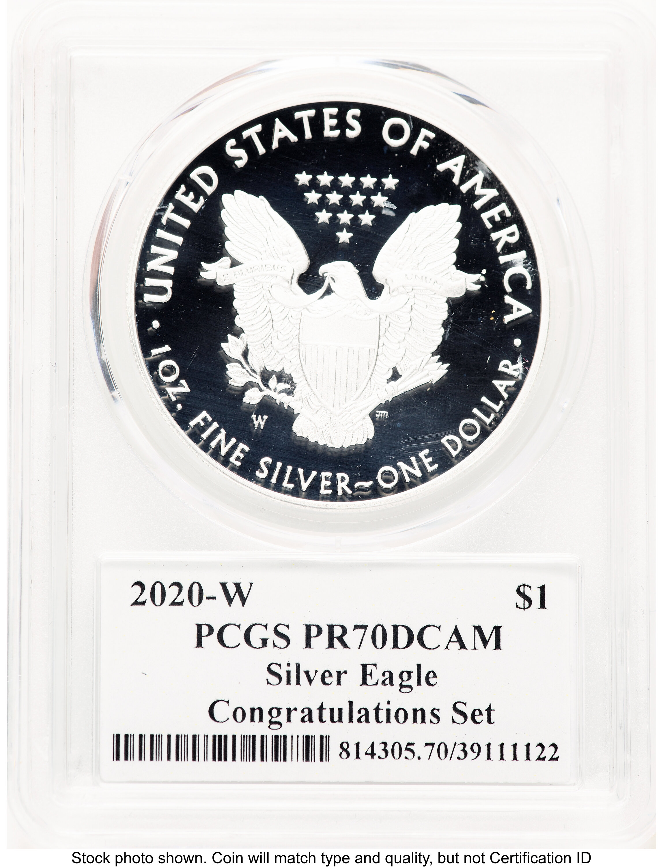 2020-W Proof Silver Eagle Congratulations Set 1 oz Premier Label 70 PCGS