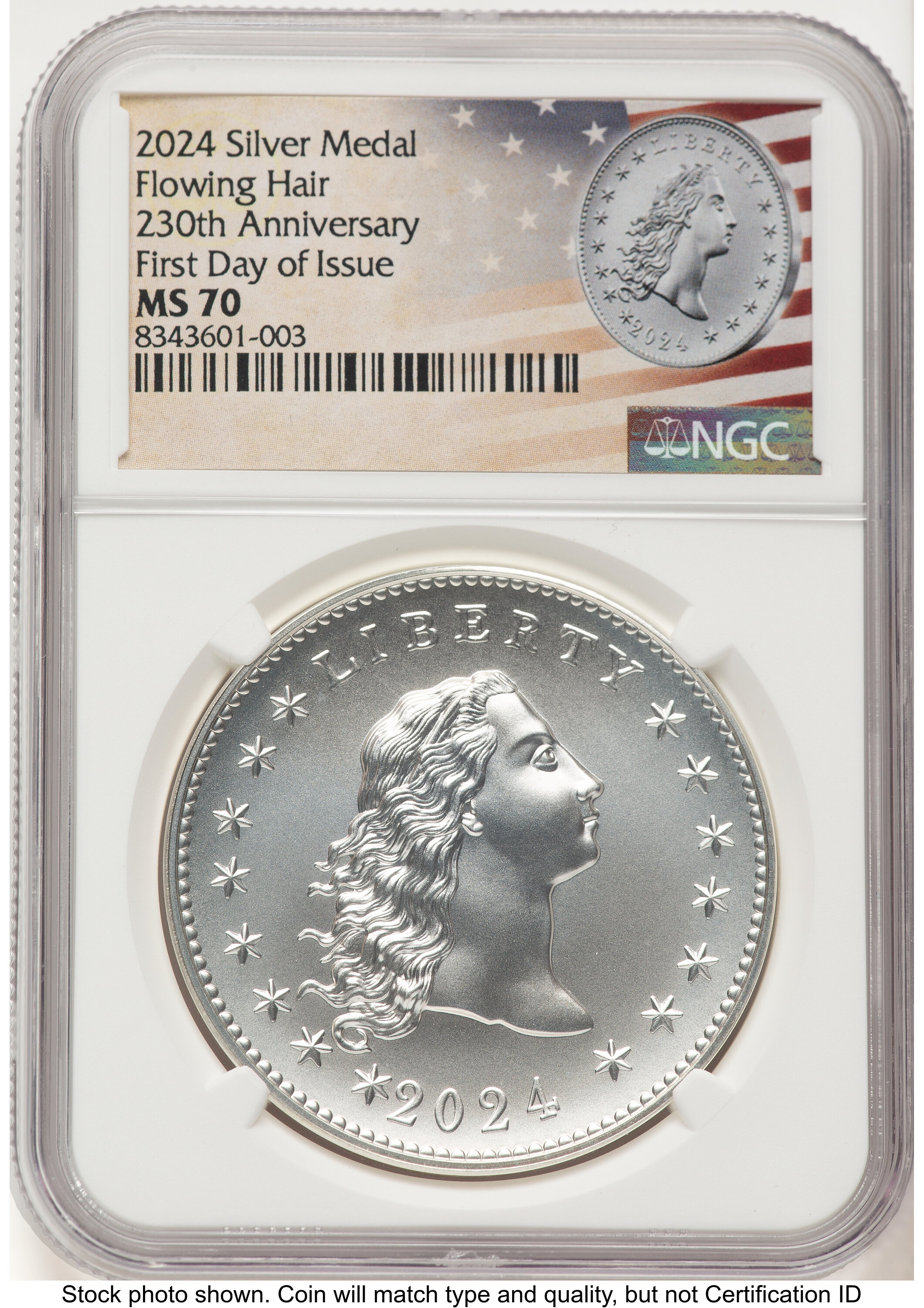 2024-(P) Silver 230th Anniversary Flowing Hair Medal FDI Flowing Hair Label 70 NGC